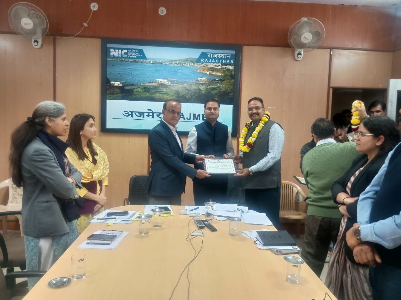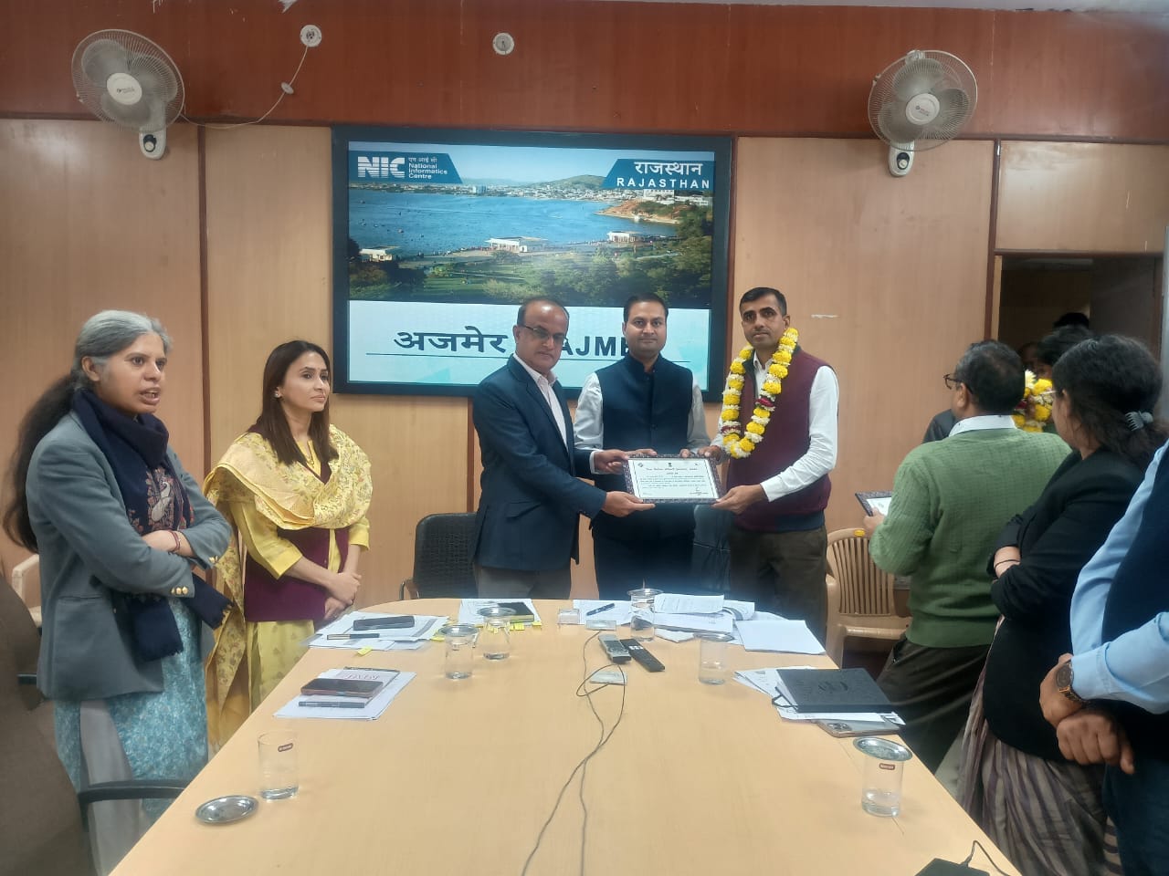 अजमेर, 2 दिसम्बर। राज्य के मुख्य निर्वाचन अधिकारी के निर्देशानुसार विशेष गहन पुनरीक्षण कार्यक्रम-2026 (एसआईआर) के अंतर्गत उत्कृष्ट कार्य करने पर मंगलवार को कलेक्ट्रेट स्थित एनआईसी सभागार में आयोजित समारोह में राज्य स्तर पर चयनित जिले के 11 सुपरवाइजर को जिला निर्वाचन अधिकारी लोक बन्धु ने राज्य स्तर से प्राप्त प्रशस्ति पत्र देकर सम्मानित किया।